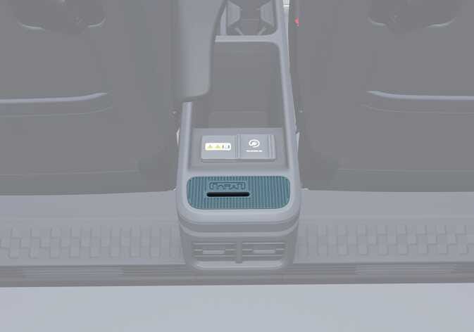 Wenn Sie Kia AddGear-Zubehör im hinteren Teil der Mittelkonsole verwenden, achten Sie darauf, die Abdeckung der V2L-Steckdose zu schließen.