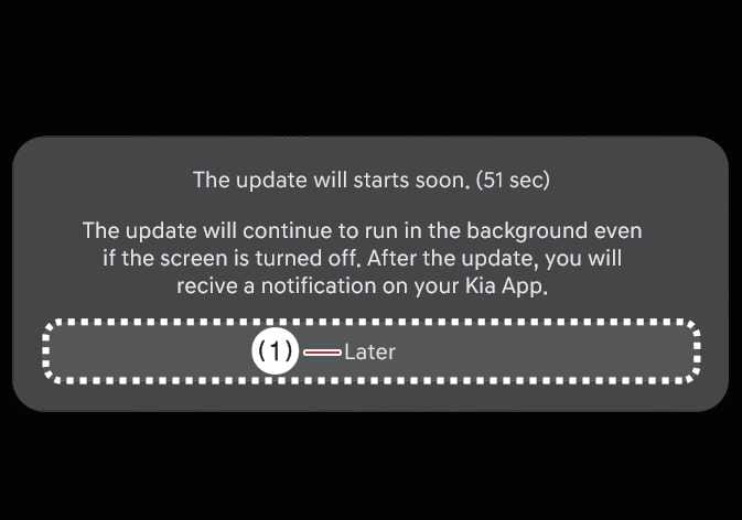 Wenn Sie auf die Schaltfläche Später auf dem Bildschirm drücken, bricht das Fahrzeug die Aktualisierung ab.