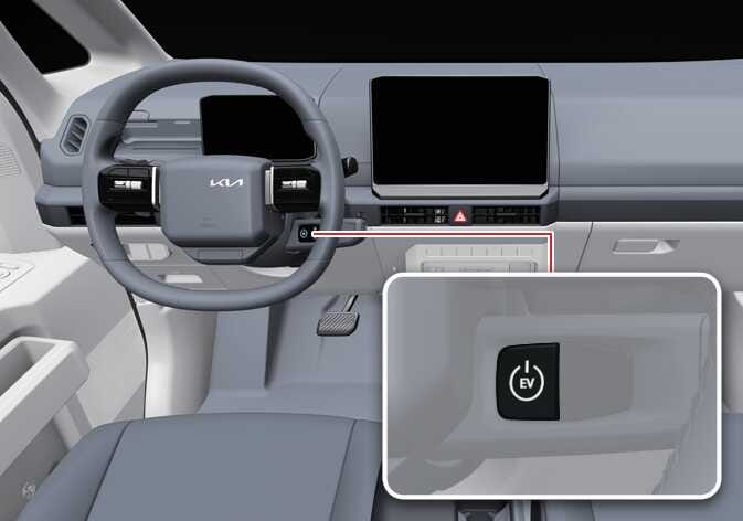 Wenn sich das Fahrzeug in der Position OFF oder POWER ON befindet, drücken Sie die Taste EV, während Sie das Bremspedal in P (Parkstellung) gedrückt halten.