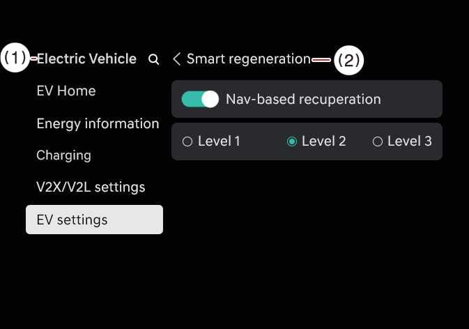 Die Abstandsstufe für das intelligente regenerative Bremsen erlaubt es, den Abstand zum vorausfahrenden Fahrzeug entsprechend der Abstandsstufe des Fahrers (Stufe 1/Stufe 2/Stufe 3) einzustellen.