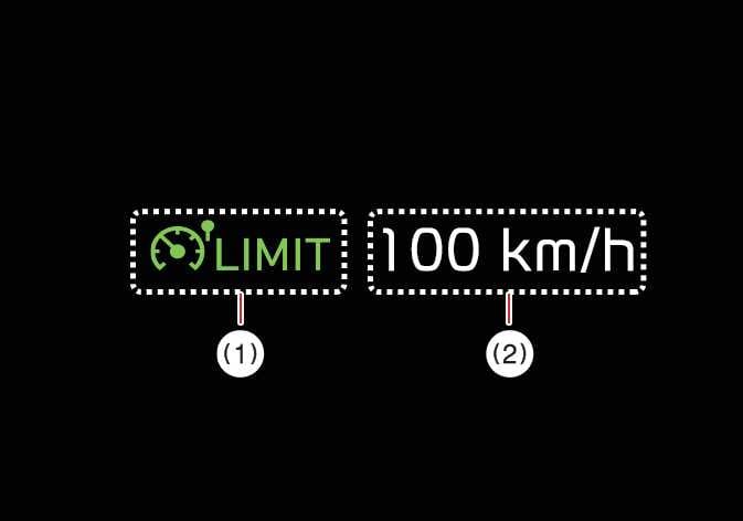 Sie können die Geschwindigkeitsbegrenzung aufheben, wenn Sie eine höhere Geschwindigkeit bevorzugen. Wenn Sie schneller als die voreingestellte Geschwindigkeitsbegrenzung fahren, wird der Manueller Geschwindigkeitsbegrenzungsassistent aktiviert (die eingestellte Geschwindigkeitsbegrenzung blinkt und es ertönt ein Warnton), bis die Fahrzeuggeschwindigkeit wieder auf die eingestellte Geschwindigkeit zurückfällt. |