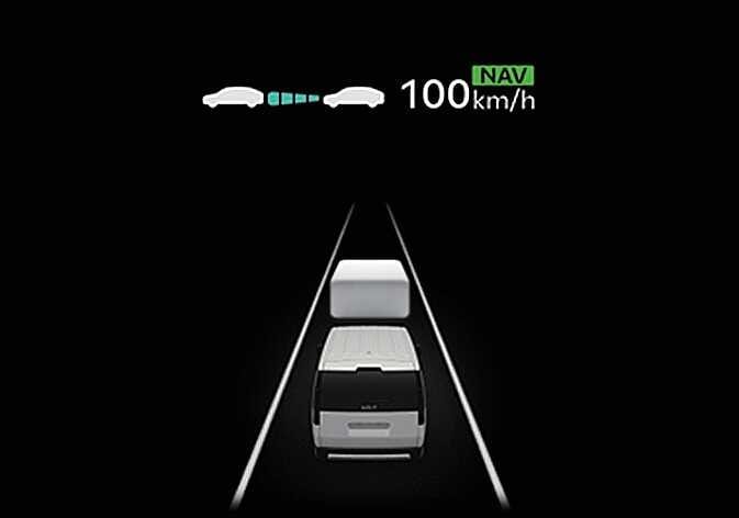 Wenn die navigationsgestützte intelligente Tempomatsteuerung aktiv ist, wird dies auf dem Kombiinstrument wie folgt angezeigt: