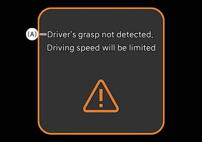 (A): Der Griff des Fahrers wurde nicht erkannt. Die Fahrgeschwindigkeit wird begrenzt. |