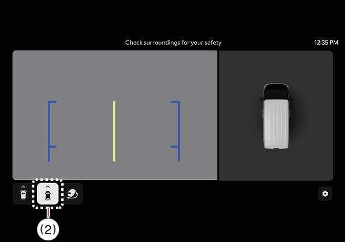 Die Einparkleitlinien hinten werden in der Hecksicht und in der Rückansicht von oben angezeigt. Wählen Sie im Einstellungsmenü des Infotainment-Systems, um diese Funktion anzuzeigen. Allerdings werden die Einparkleitlinien hinten nicht in der Hecksicht während der Fahrt angezeigt.