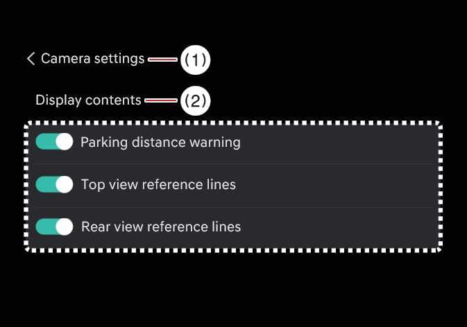 Anzeigeinhalt: Legen Sie die Informationen fest, die auf dem Bildschirm des Parkassistenten angezeigt werden sollen.