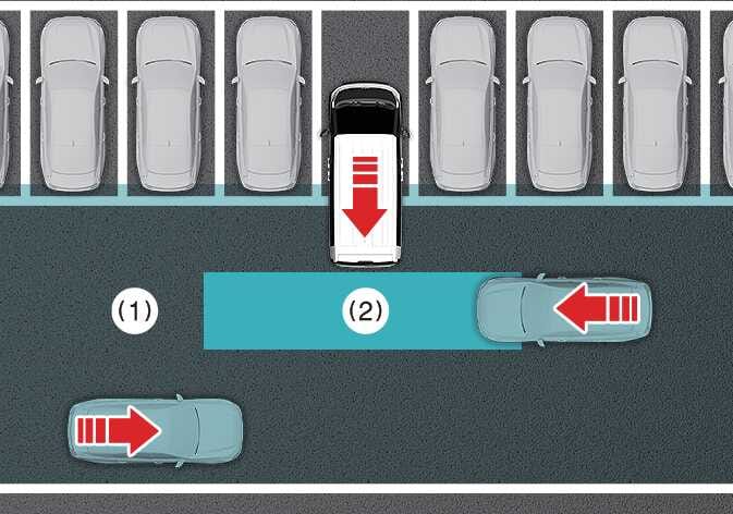 Das Heckverkehr-Kollisionsvermeidungsassistent erkennt Fahrzeuge, die sich beim Zurücksetzen Ihres Fahrzeugs von hinten links oder rechts nähern, und warnt Sie mit einer Warnmeldung und einem Warnton vor einer möglichen Kollision. Das Heckverkehr-Kollisionsvermeidungsassistent kann auch beim Abbremsen des Fahrzeugs helfen, um eine Kollision zu vermeiden.