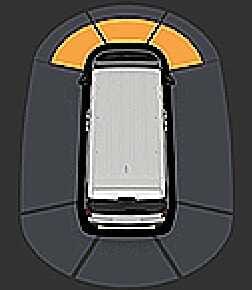 Wenn der Abstand zum Objekt mehr als 60 cm (24 in.) beträgt, wird es bei der Warnung vorne und außen nicht auf dem Kombiinstrument angezeigt.