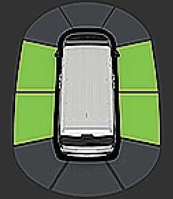 Die seitliche Einparkhilfe funktioniert nur, wenn die Einparkhilfe hinten eingeschaltet ist.