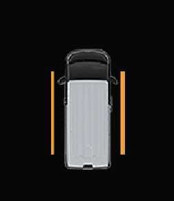 Wenn der seitliche Ultraschallsensor eine Person oder ein Objekt erkennt, zeigt er Kontrollleuchten für jeden Abstand auf der Anzeige des Kombiinstruments oder des Infotainment-Systems an.