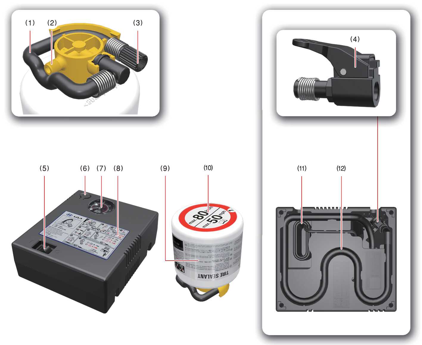 Verbinder, Kabel und Kompressorschlauch werden im Kompressorgehäuse aufbewahrt.