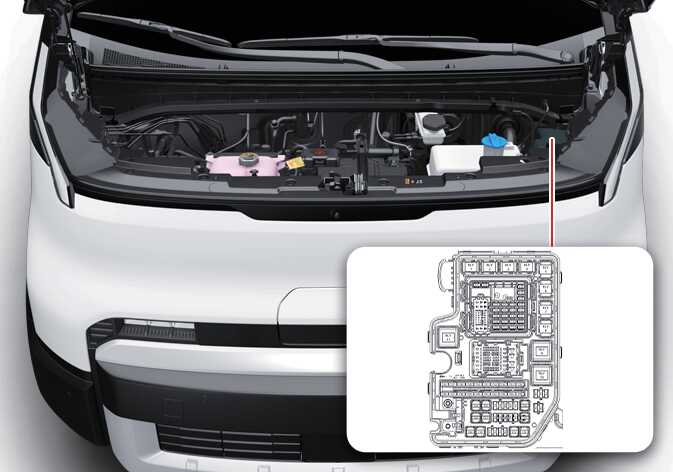 Verschließen Sie nach Arbeiten am Sicherungskasten im Motorraum den Deckel des Sicherungskastens sicher mit hörbarem Einrasten. Andernfalls kann Feuchtigkeit eindringen und elektrische Fehlfunktionen verursachen.