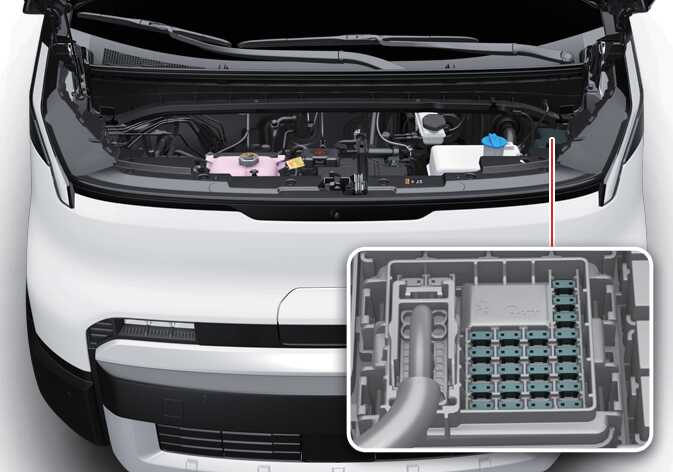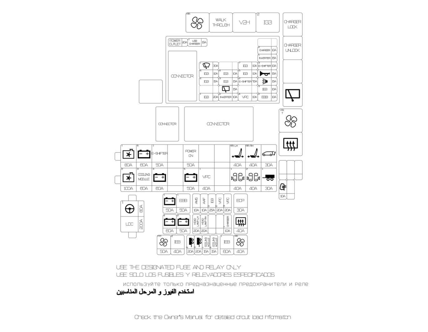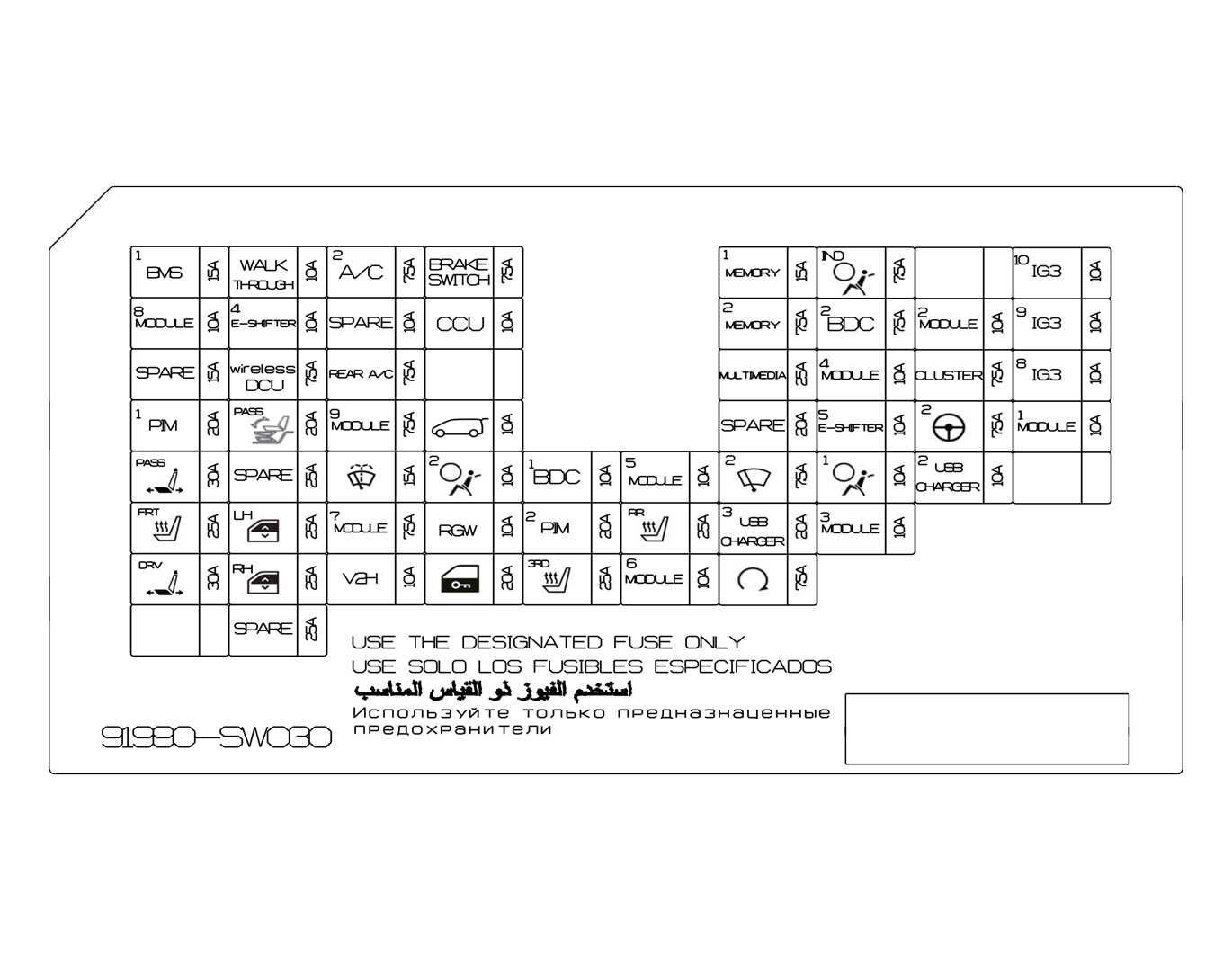 Auf der Unterseite der Sicherungs-/Relaiskastendeckel befindet sich je eine Aufstellung der enthaltenen Sicherungen/Relais inklusive ihrer Bezeichnungen und der zugehörigen Amperezahlen.