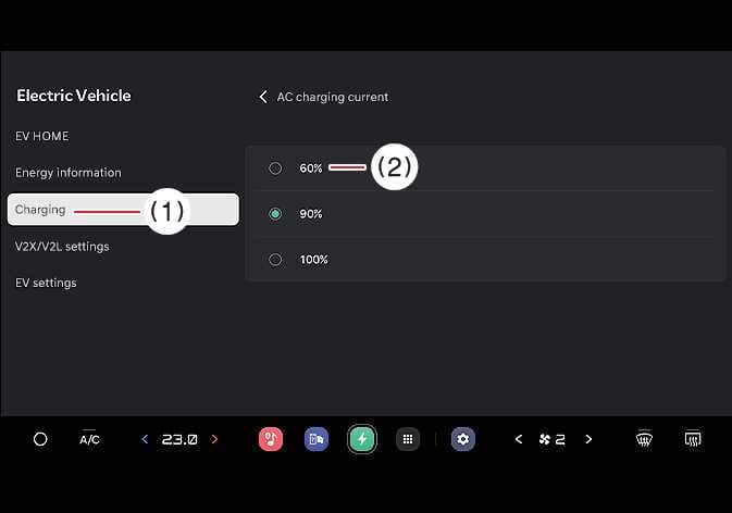 You can adjust the charging current for an AC charger. Select an appropriate charging current.