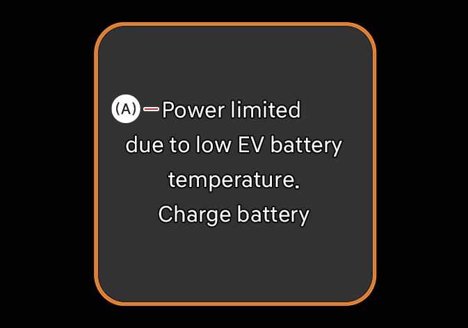 (A): Power limited due to low EV battery temperature. Charge battery |