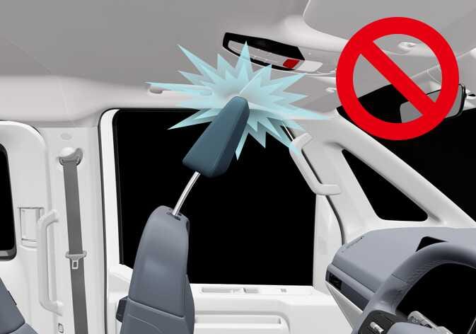 If you recline the seatback towards the front with the headrest and seat cushion raised, the headrest may come in contact with the sun visor or other parts of the vehicle.