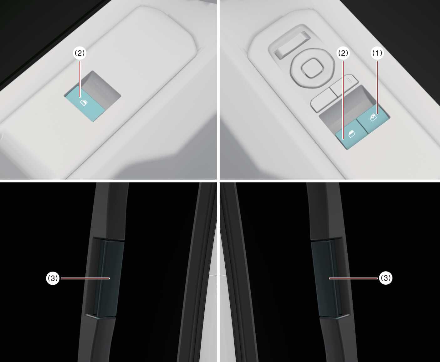 Each door has a power window switch that controls the door's window. The driver has a power window lock button which can block the operation of rear passenger windows. The power windows can be operated for approximately 3 minutes after EV button turned to the ON position. However, if the front doors are opened, the power windows cannot be operated even within the 3 minutes period.