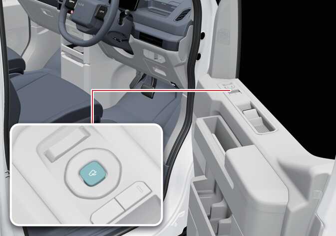 The outside rearview mirror can be folded or unfolded by pressing the switch when the EV button is in the POWER ON or DRIVE READY position.