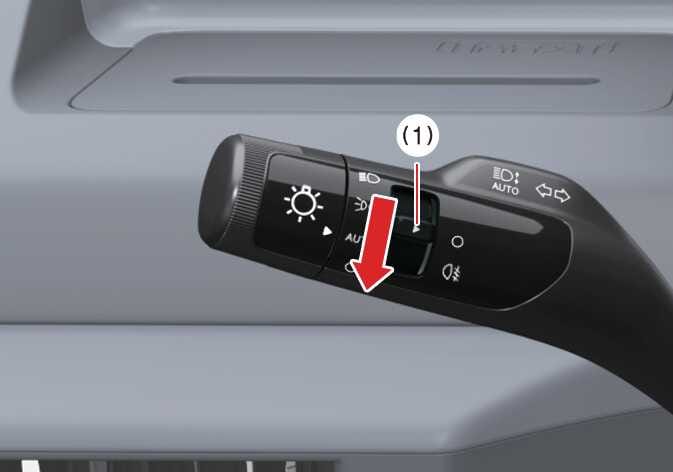 To turn the rear fog lights on, turn the rear fog light switch (1) to the on position when the headlight is turned on.