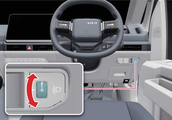 To adjust the headlamp beam level according to the number of the passengers and loading weight in the luggage area, turn the beam levelling switch.