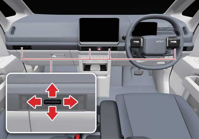 You can adjust the direction of air delivered from these vents using the vent control lever as shown.