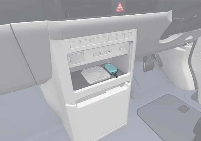If the battery is weak or the smart key does not work correctly, you can start the vehicle by placing the smart key next to the wireless charging system area located on the centre console, and then pressing the EV button for about 10 seconds in OFF position.