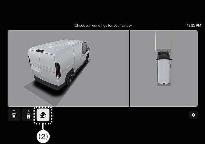 3D view function shows the vehicle in various angles. Press the 3D view icon on the Surround View Monitor screen to choose the angle. Press the 3D view icon again to reset the angle.