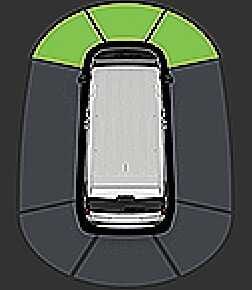 When in R (Reverse), no warning is issued for objects inside the front. Only objects within 60 cm (24 in) outside the front will be alerted.