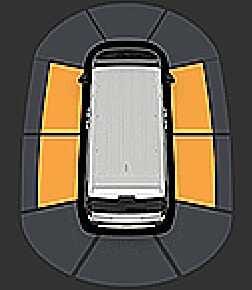 When the lateral ultrasonic sensor detects a person or object, it displays indicator lights for each distance on the cluster or infotainment system screen.