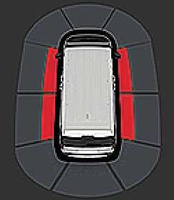 In D (driving), when the distance from the object is 30 cm (12 in) or more, the side-way warning is not displayed on the cluster.