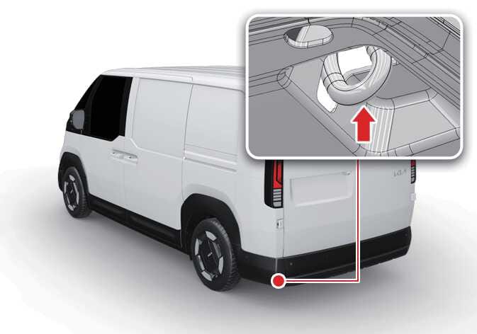 Do not use the vehicle tie-down hook for towing purposes. The tie-down hook is designed solely for securing the vehicle during transport. Using this hook for towing may cause it to break, resulting in serious vehicle damage or personal injury.