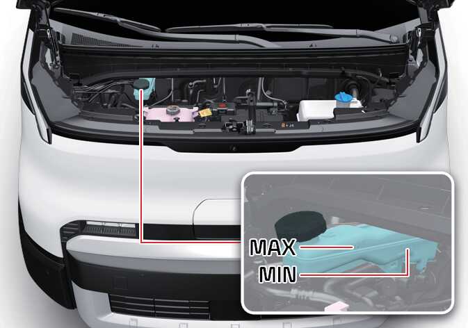 Check the fluid level in the reservoir periodically. The fluid level should be between MAX and MIN marks on the side of the reservoir.